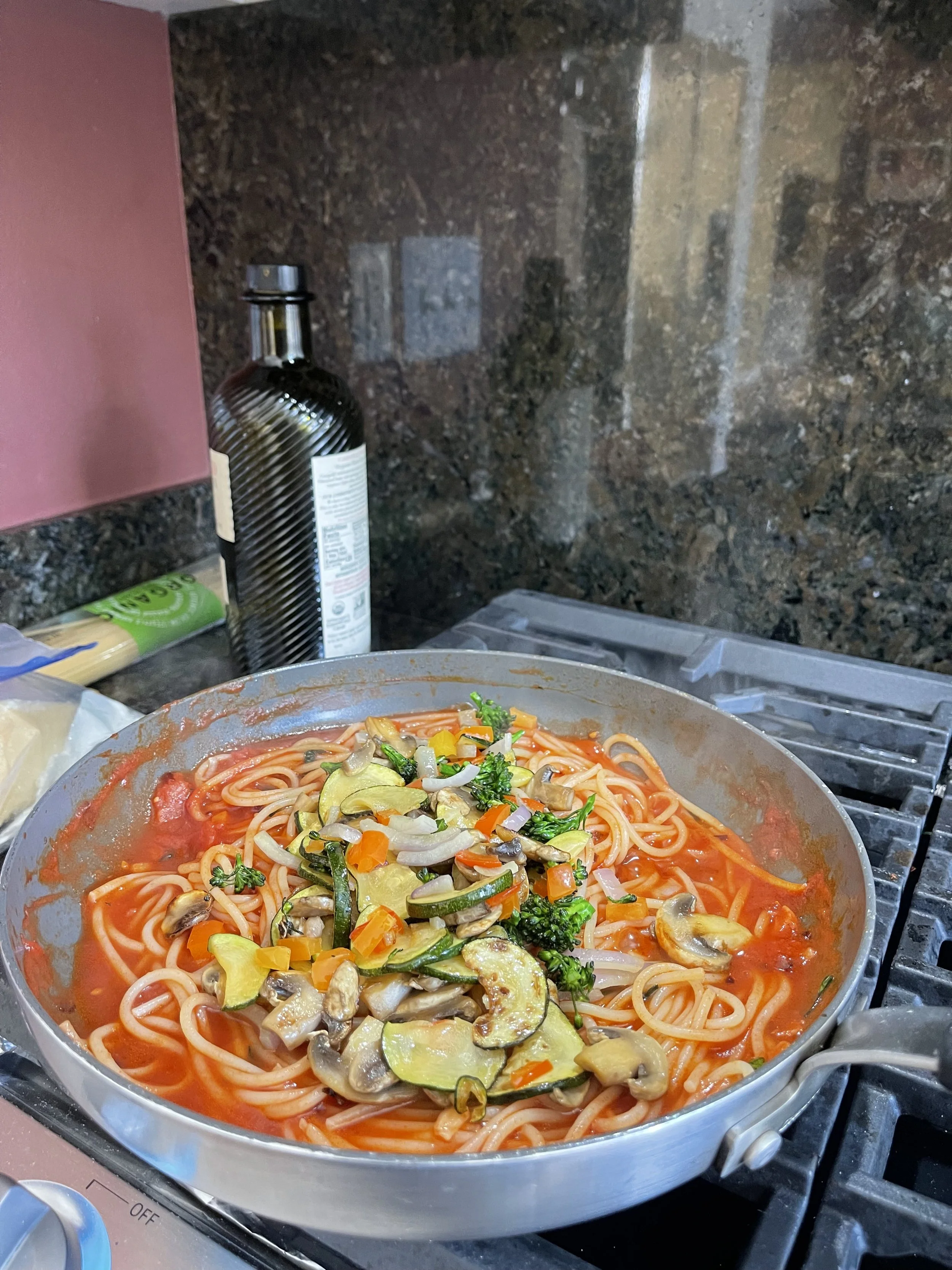 Can add in sauteed vegetables at this point.(onions, bell pepper, broccolini, zucchini)
