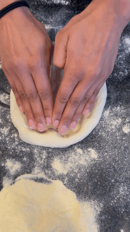 Cup the dough with your hand and roll in a circle motion until a circular shape - dont push down.