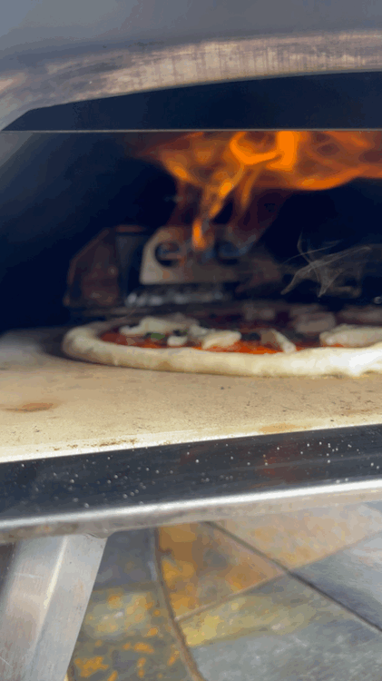 Immediately add to the ooni. Turn every 30 seconds until fully cooked using the pizza peel or a long spatula, try to keep the front closed whenever possible so heat doesn’t escape.