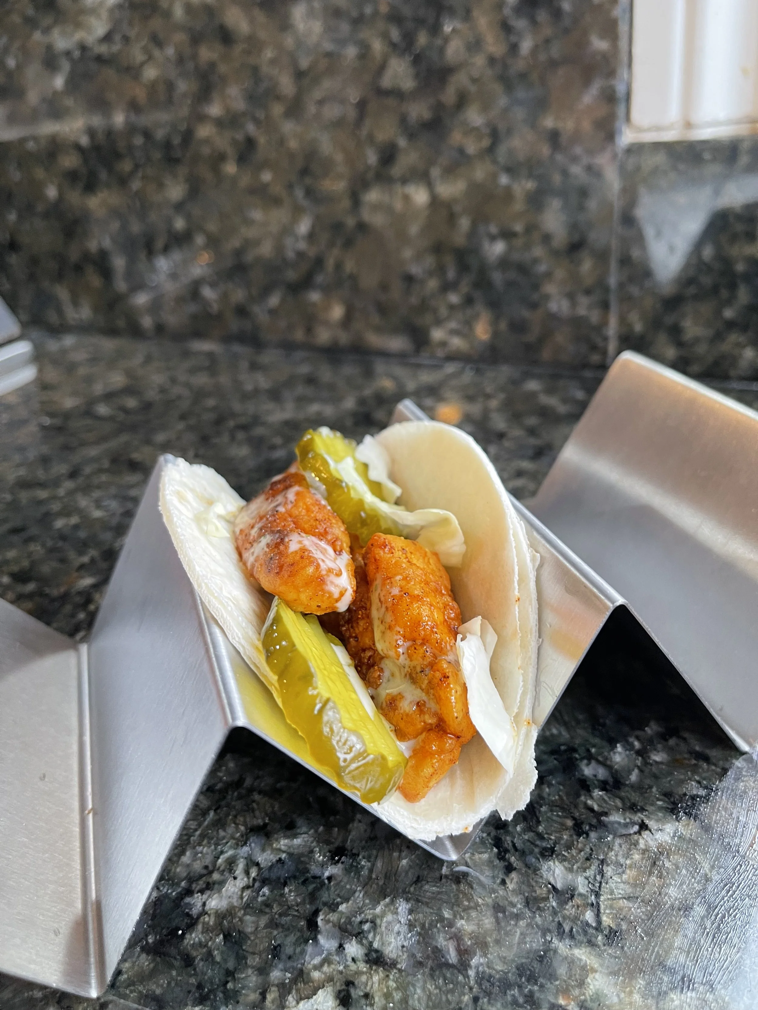 Toppings: cabbage/coleslaw, pickles (i like sweeter pickles), ranch