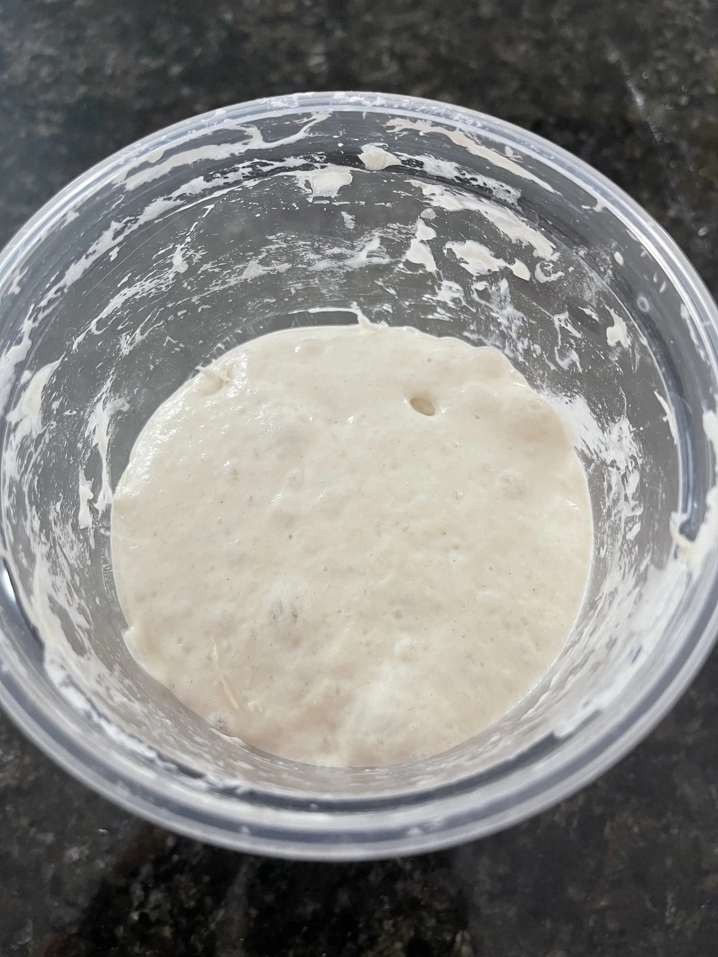 1:10:10 (Overnight Feed - slower rise) - 10 g starter, 100 g AP flour, 100 g water